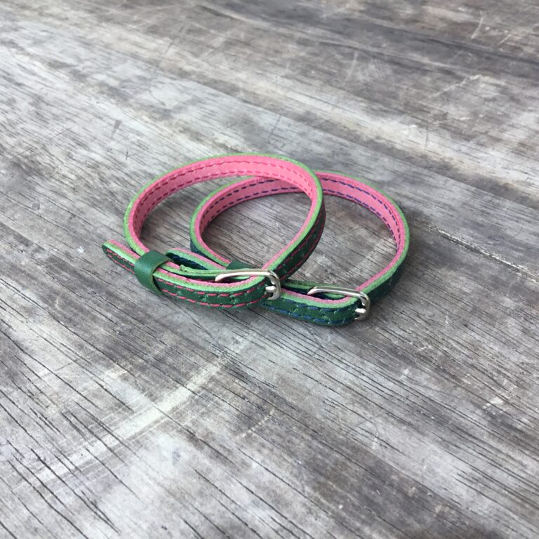 ブレスレットにチャームを取り付けるため2枚の革を貼り合わせても通るように
