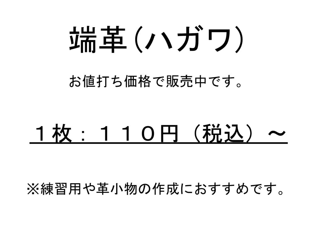 店内ポップ(端革) その他 2025.01.31 皮革工芸材料店「かわのすけ」です。店舗内に掲示しているお得情報満載の店内ポップをご紹介します。 上記の内容は予告なく変更する場合がありますのでご了承ください More from my siteキーリング(KW25034)ブックカバー(KW25033)バッグ(KW25032)スマホポーチ(KW25031)ロングウォレット(KW25030)ペンスタンド(KW25029)